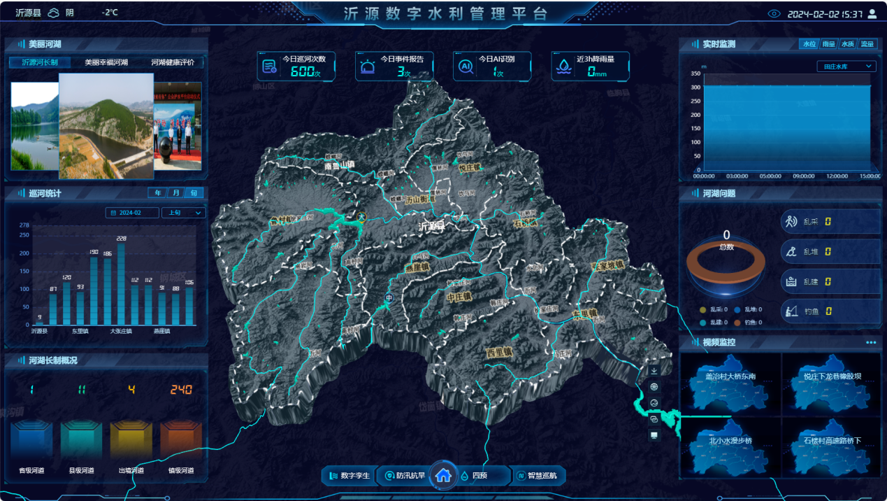 • 全场景智能化 基于数字孪生技术,对水库坝体、地形地貌、机电设备等进行虚实交互,结合监测感知、模型融合分析,实时掌握运行状态和管理活动。顺利获得自研人工智能算法,借助视频监控和无人机设备赋能水利场景,有效识别人员行为、水域环境、水工安全等隐患,实现各种智能识别功能,如钓鱼行为、“四乱”识别、水尺识别等。研发水文预报模型、城市内涝模型、洪水演进模型、洪水淹没模型及联合调度模型等,为防洪调度给予更加科学、快捷、有效的支撑服务,为新阶段水利高质量开展给予有力支撑和强力驱动。